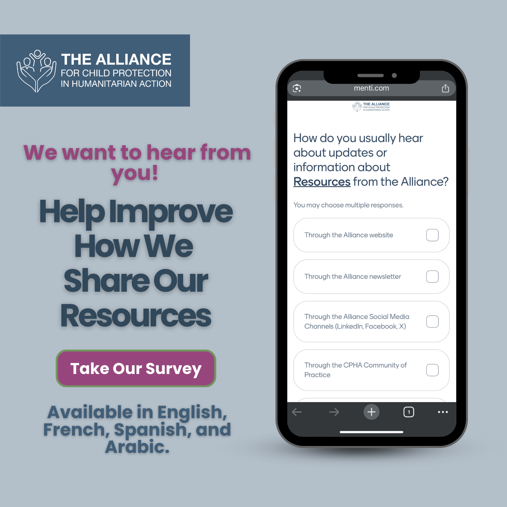 The Alliance for Child Protection in Humanitarian Action ("The Alliance") envisions a world in which children are protected from abuse, neglect, exploitation and violence in humanitarian settings.